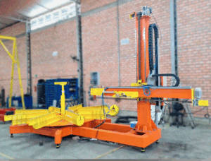 - A máquina foi desenvolvida para realizar processos de soldagem em tanques cilíndricos, combinando robustez estrutural, precisão mecânica e automação inteligente. Seu conjunto é composto por três sistemas principais interligados — base giratória, torre cartesiana e cabeçote de solda — todos integrados a um sistema de controle automatizado, com programação e operação por meio de IHM (Interface Homem-Máquina). O projeto atende integralmente aos requisitos da NR-12, garantindo segurança na operação, manutenção e setup por meio de proteções físicas, sistemas de emergência, sensores de segurança e dispositivos de intertravamento, conforme exigido pela norma.